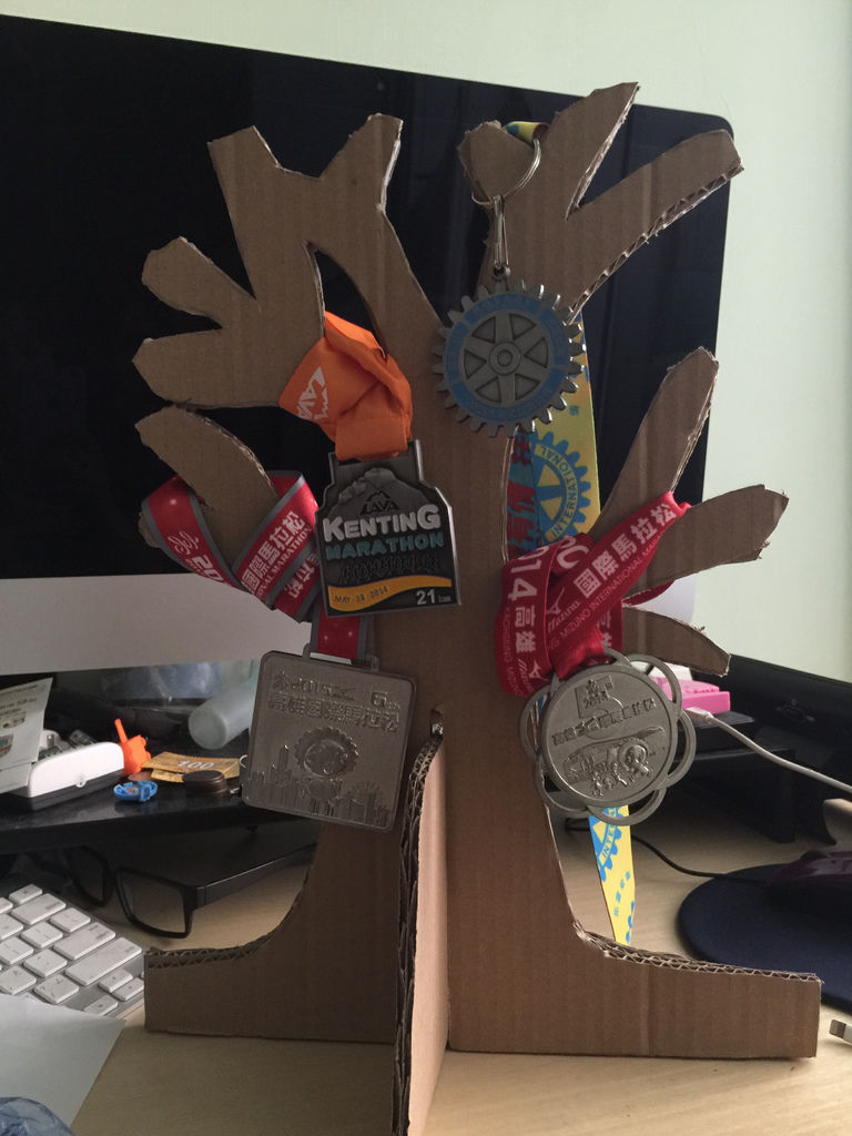 直到某次看到Pinterest裡很多人DIY cardboard tree,我就馬上去找了獎牌樹來做!
