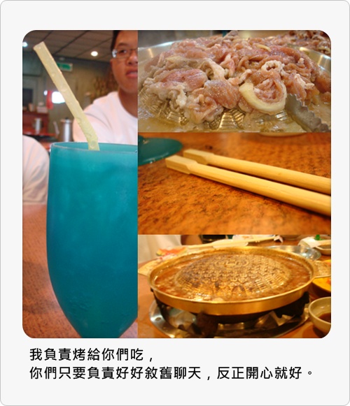 韓式銅盤烤肉的好處就是上面烤肉湯汁下面 可以順便煮火鍋