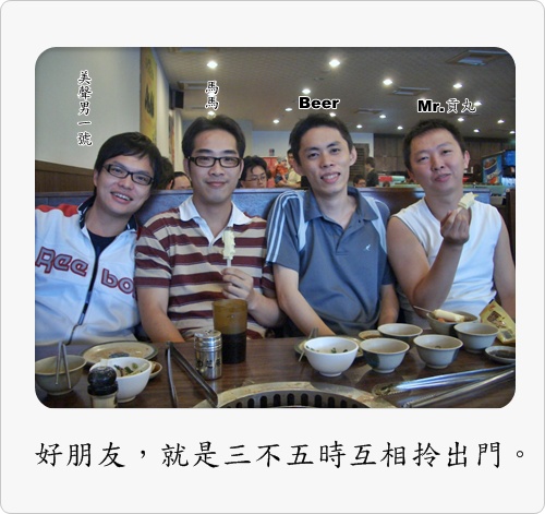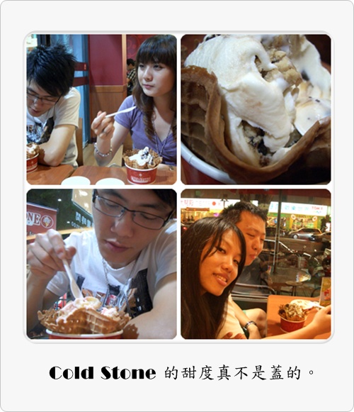 | 端午節假期,我過得很充實,肚子也是。 不管是Cold Stone、燒肉屋,還是夢想,我都深深的著迷。 吃Clod Stone是跟貢丸,還有貢丸的哈尼以及貢丸哈尼的內人一起去的,那個可惡的0號,居然跟我搶副駕駛的位置,讓我內心整個就冒出『真是真是,你不知道你已經過去式了嗎~你們之間是不可能的!!!』哈哈,不過,好悲哀喔,我只能在這裡跟他嗆聲XD |